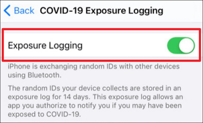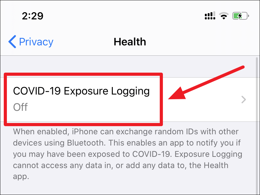 Then, finally tap on the ‘COVID-19 Exposure Logging’ option at the top of the screen.