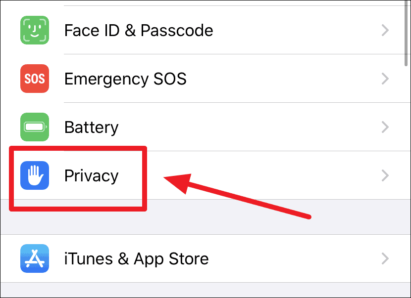 Scroll down a bit on the iPhone Settings screen, and select the ‘Privacy’ option when you see it.