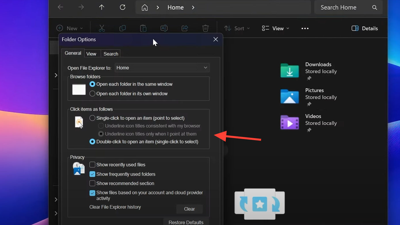 Step 9: Verify Folder Options. Open File Explorer, go to the menu, and open Options to check the dark styling.