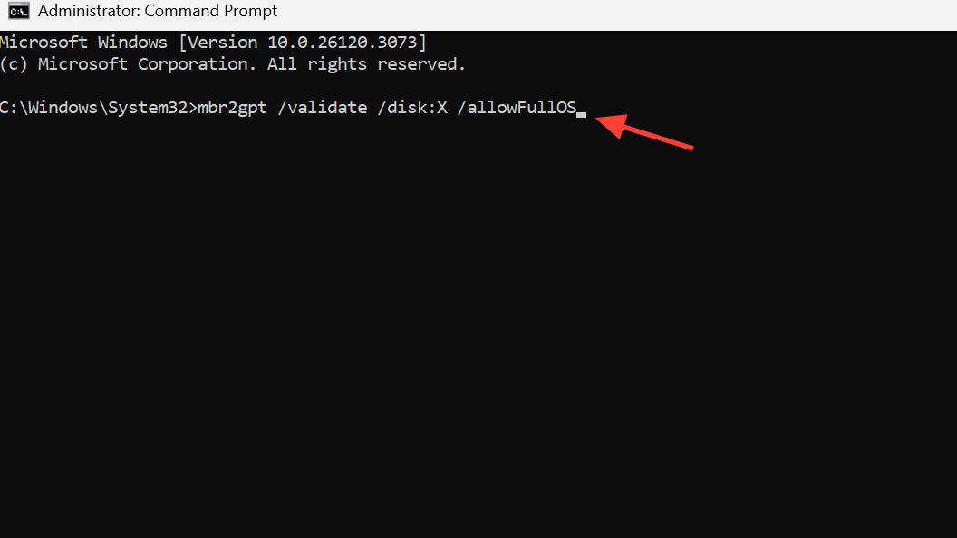mbr2gpt /validate /disk:X /allowFullOS