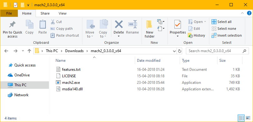 Download the mach2 zip file from the download link above as per your system specs (32-bit or 64-bit) and unzip/extract the file’s contents to a separate folder on your PC.