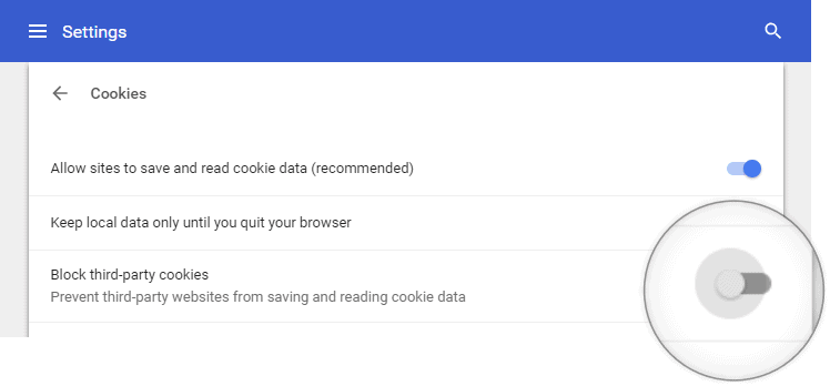 Step 5: Look for the option labeled Block third-party cookies. If the toggle is switched Off, third-party cookies are enabled.