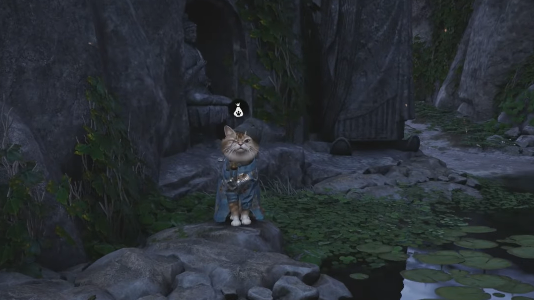 Step 2: Travel to the icon and interact with the small cat statue or related object, usually by pressing the default interaction key when prompted.