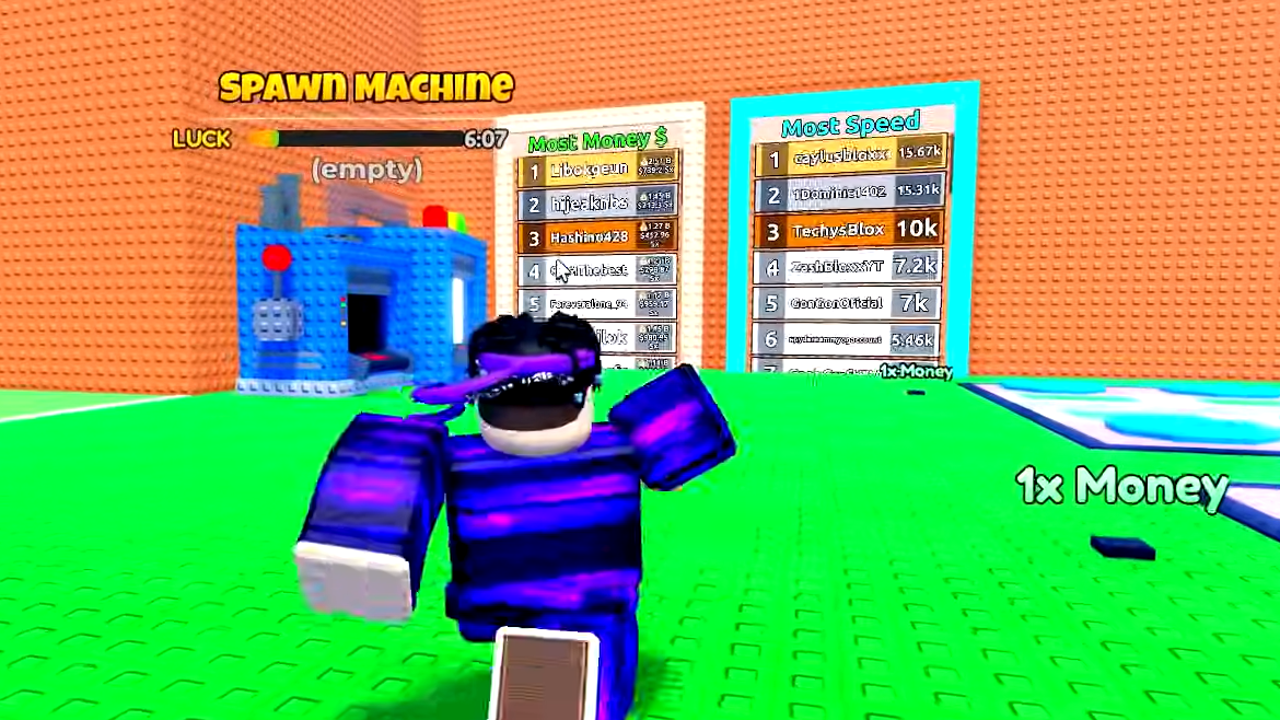 The Money Spin rewards Money Bat, Money Lucky Blocks, Money Grappellino D'Oro, or any Secret, Cosmic, or Celestial brainrot with a random mutation. Money Lucky Blocks spawn on the map and also drop as rewards for completing parkour obbies between area gaps. Any brainrot with the Money Mutation earns 4x its normal income, making this event valuable for long-term wealth building. An ATM appears in the Legendary area during the event—submit three brainrots to fuse them into a single brainrot with the highest rarity of the three. For example, if you submit one Divine and two Legendary brainrots, you get a Divine brainrot back.