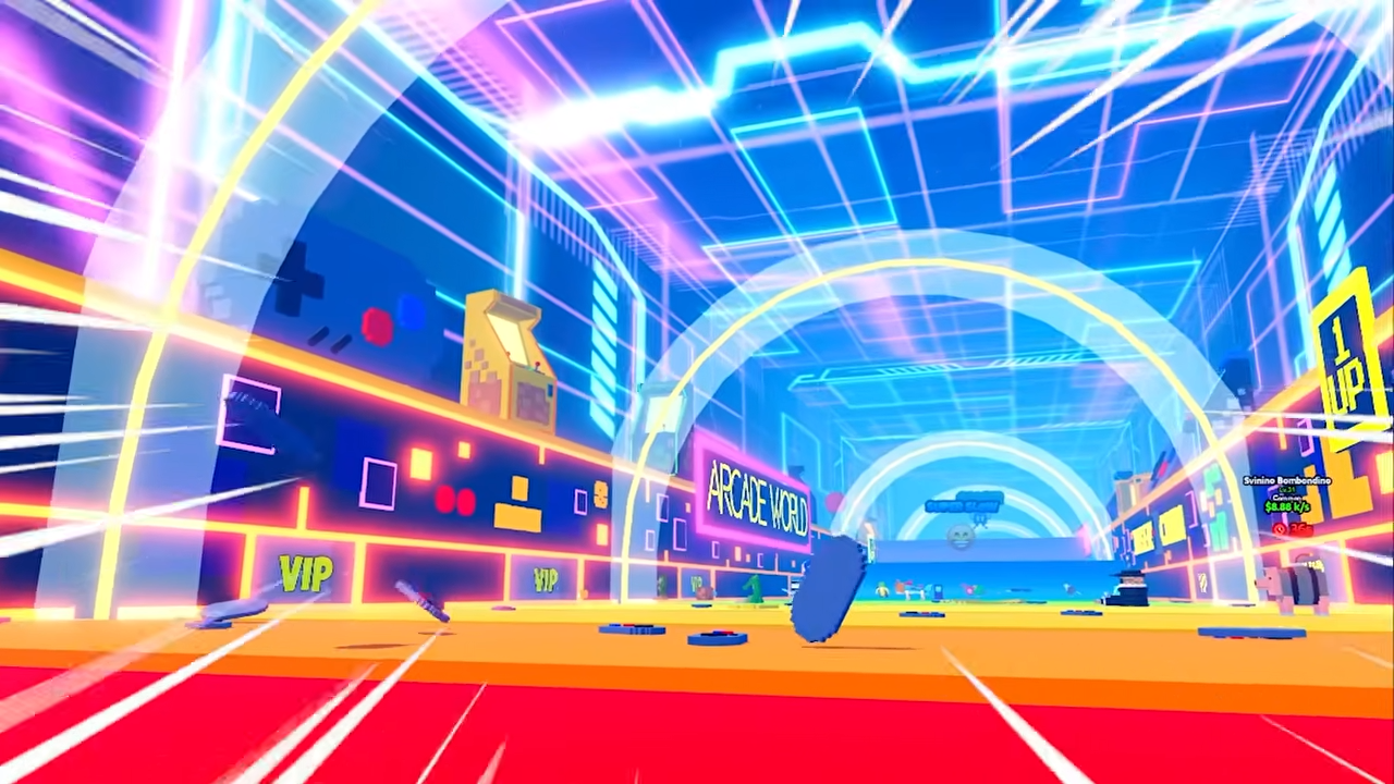 The Arcade Event has no fixed schedule. It triggers randomly once per hour and remains active for up to 10 minutes. When the event starts, the map visuals shift to an arcade theme, and a new zone called Arcade World appears between the Epic and Legendary zones. This zone and the secret room inside it only exist during the event—once the event ends, they disappear completely.