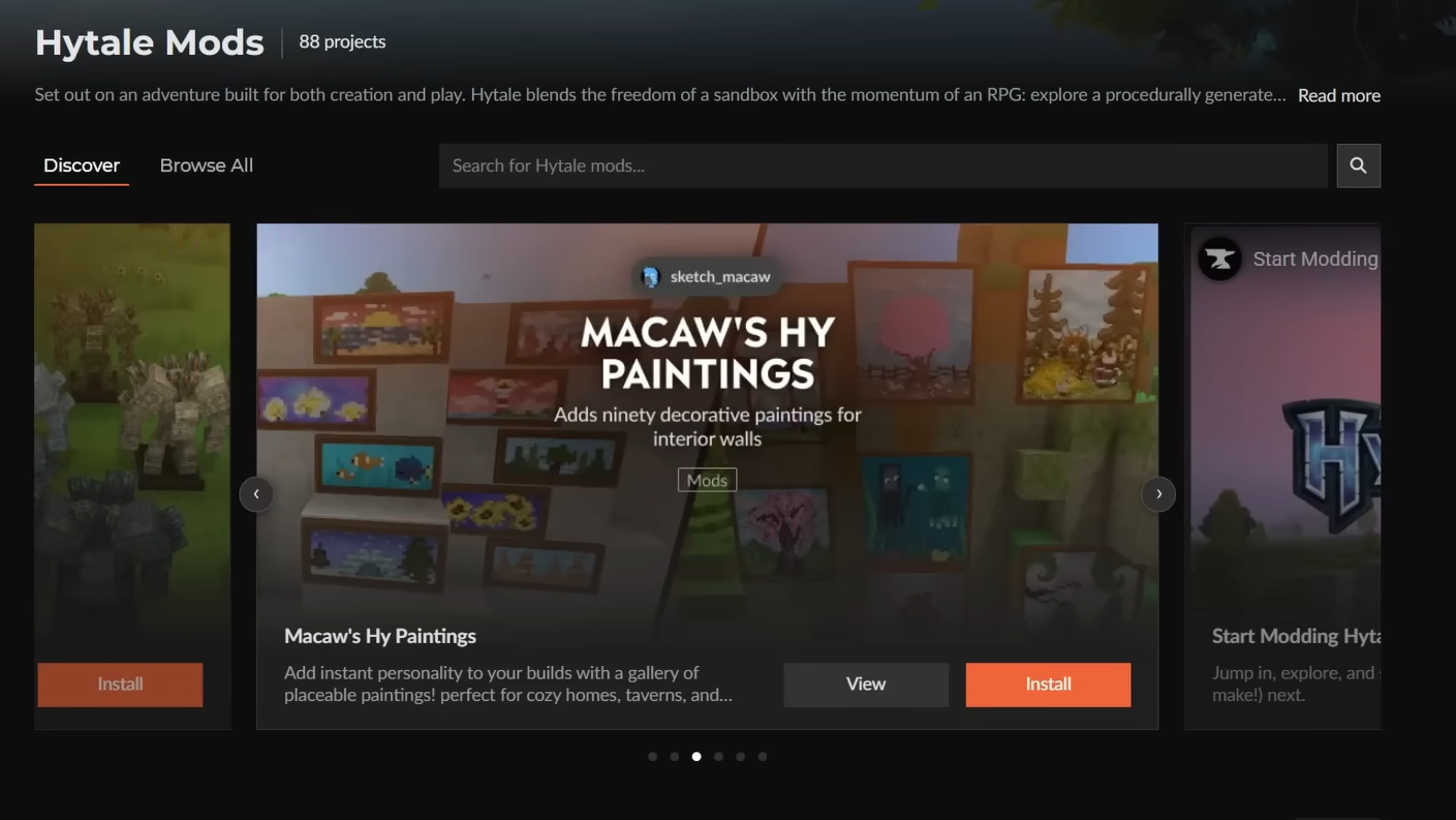 Step 3: Browse or search for a mod, then use the “Install” button on the chosen project. CurseForge downloads it and adds it to your Hytale mod profile.