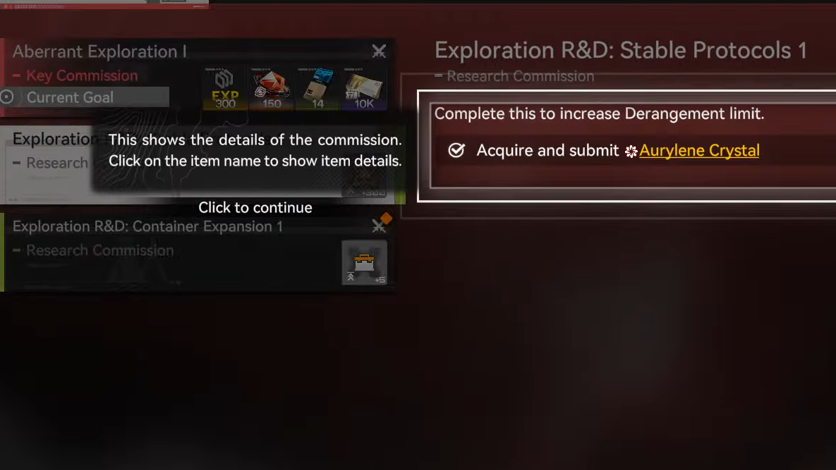 Step 1: Talk to Aquito and open the Exploration Commission menu. You will see a list of available commissions, each with different resource and difficulty profiles.