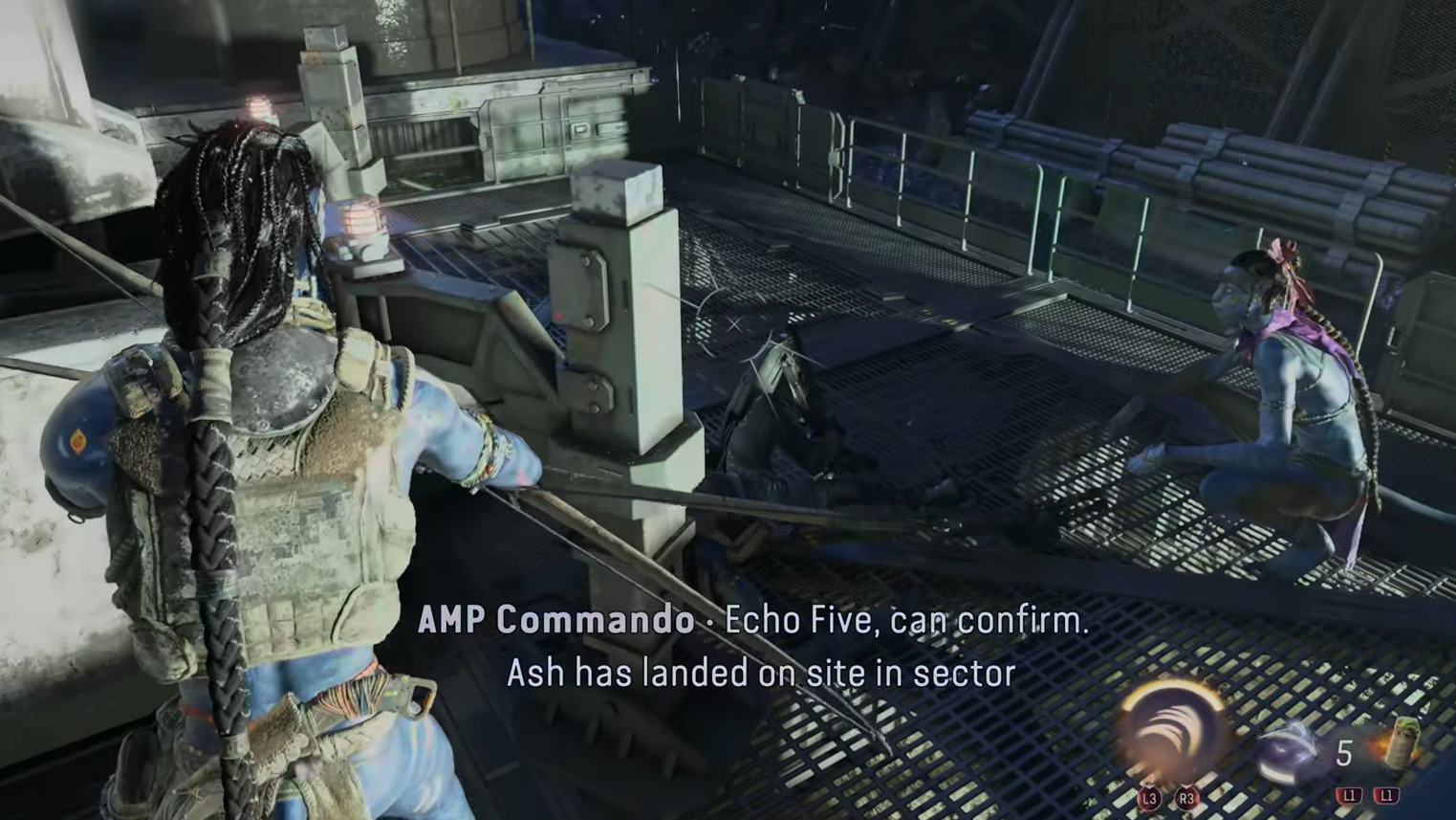 Step 1: Drop down into the base exterior and start working through the RDA forces. Use your assault rifle as your primary tool here; its sustained damage output lets you cut down standard infantry before they can stack fire on you. Etuwa fights alongside you during this section, drawing some aggro and helping to thin out enemies.