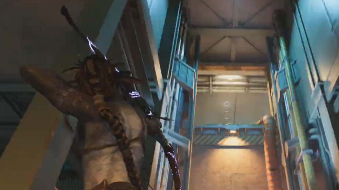 During the cutscene, Etuwa chooses to prioritize rescuing her father over chasing the Mangkwan operative Ti’at, who is also present in the facility.