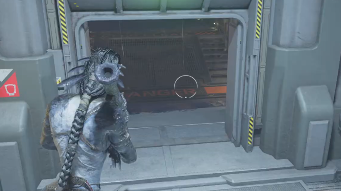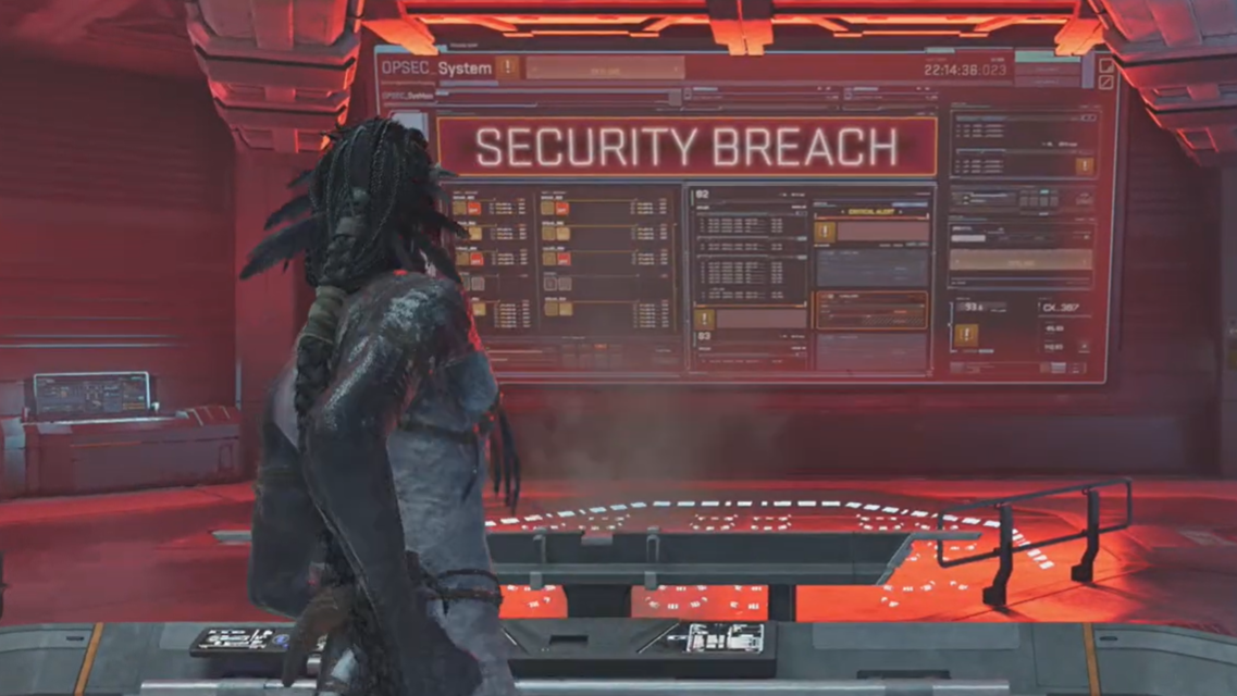 Step 6: Face the large screen showing a “Security Breach” message. In front of it sits a terminal you can destroy. Shoot or melee this terminal to trigger a cutscene showing Ka’nat trapped in a holding cell somewhere else in Operations Center Delta.