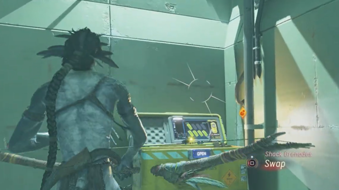Step 4: An armored RDA enemy waits ahead. Use an Assault Rifle or Shotgun to break their armor quickly, then finish them off. Once they’re down, turn right again and interact with the nearby switch to open the next door.