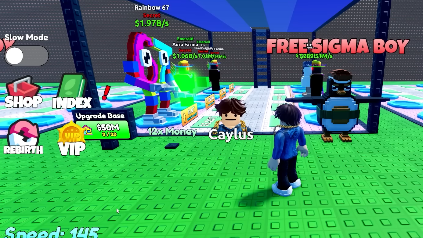 With this structure, each rebirth slightly raises the bar by another 10 speed levels while also raising your cash-per-second multiplier by 0.5×. Over time, those bonuses stack into huge numbers, especially when combined with high-rarity and mutated brainrots.