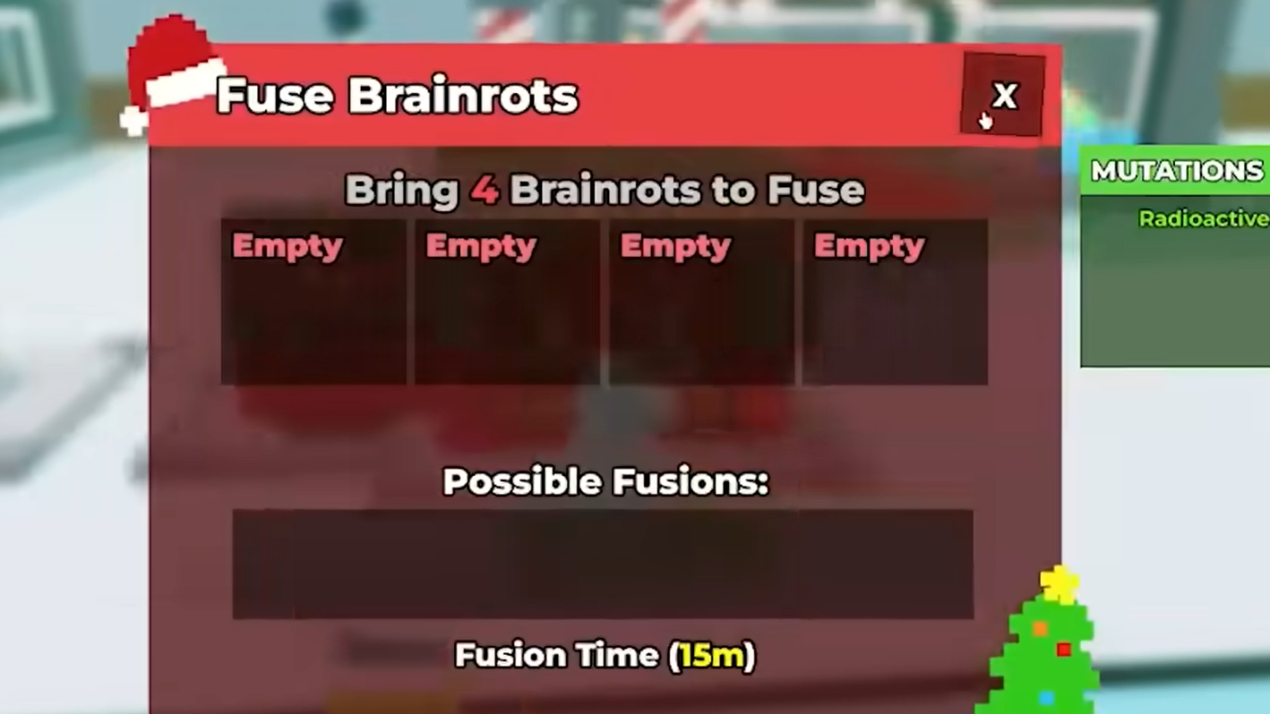 Step 1: Go to the center of the lobby where the Brainrot Trader normally stands. Interact with Santa’s Fuse to bring up the fusion screen.