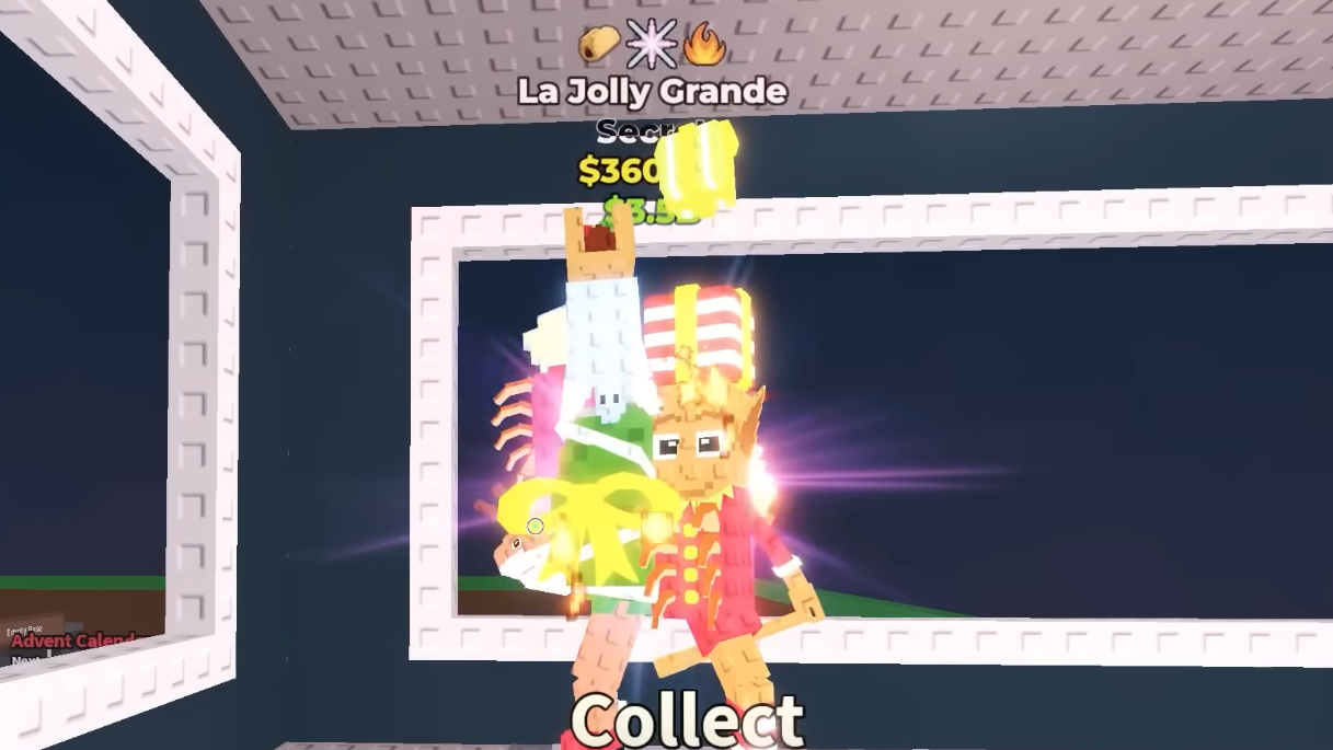 Your task is to pick these up, one by one, and make sure you eventually own all four different units at the same time. Once all four have been collected, you can redeem them for the event’s featured reward: the limited La Jolly Grande brainrot.