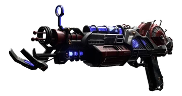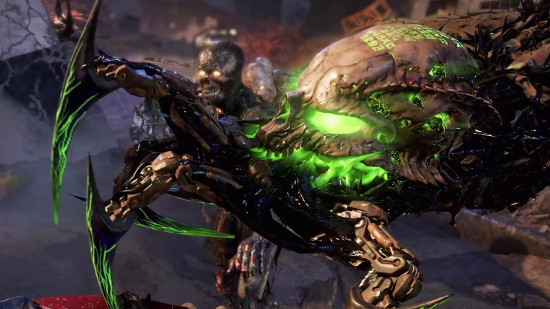The Necrofluid Gauntlet is a fanged, black glove with a sickly green glow and vein-like channels running through it. It’s designed to be lethal up close but also useful in open space. The gauntlet can: