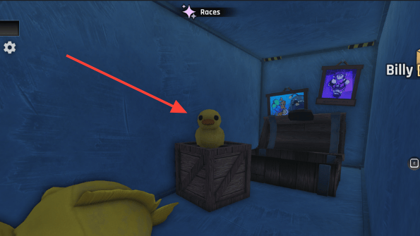 Near the spawn point, find the dark blue shipping container where Billy (the storage-upgrade NPC) is leaning. The door is tight, so shimmy sideways to squeeze through. The Duck is sitting inside on the floor.