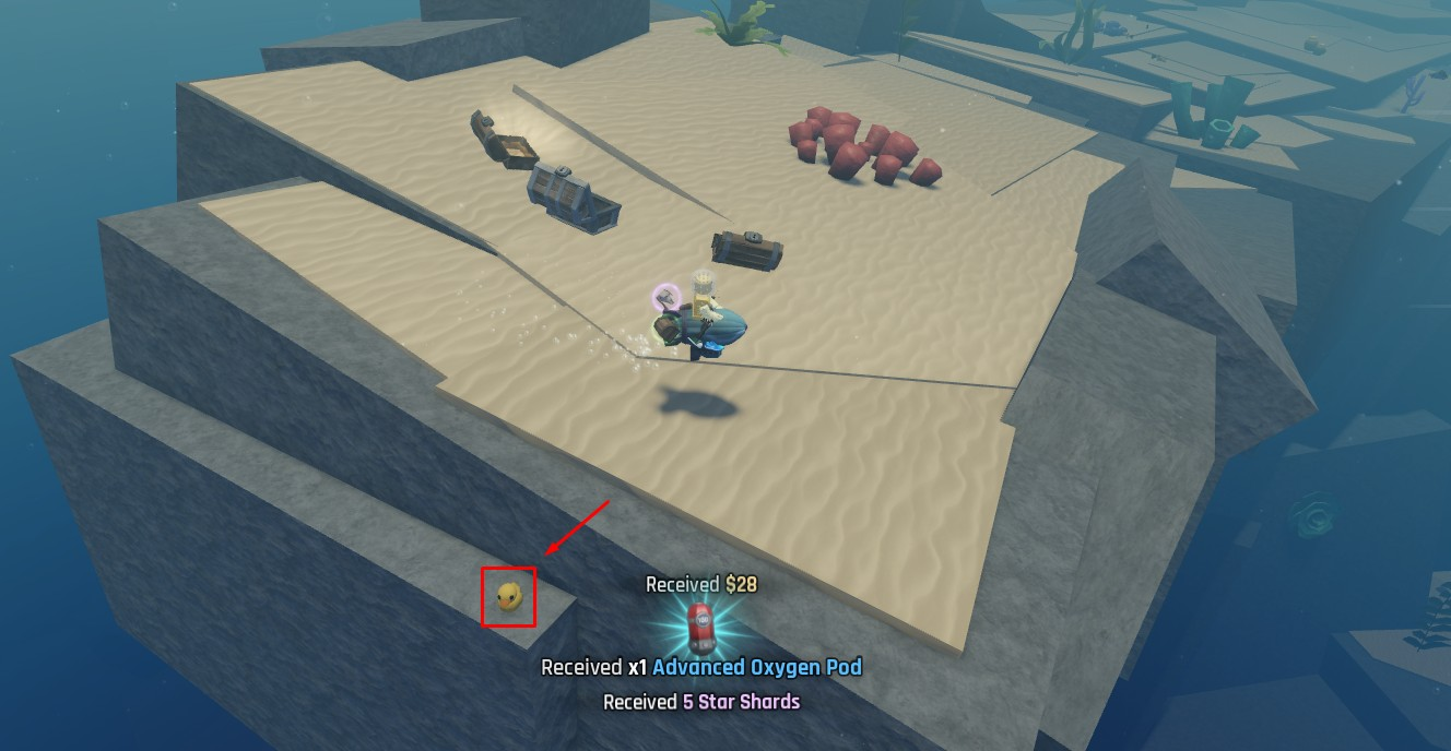 Ancient Sands sits at roughly 240 meters deep. You need either the Boat Tube or a supply of Oxygen Pods to explore safely. Crazy Jeff's Store is a cave, so your oxygen restores once you step inside — use it as a refill station between Duck runs.