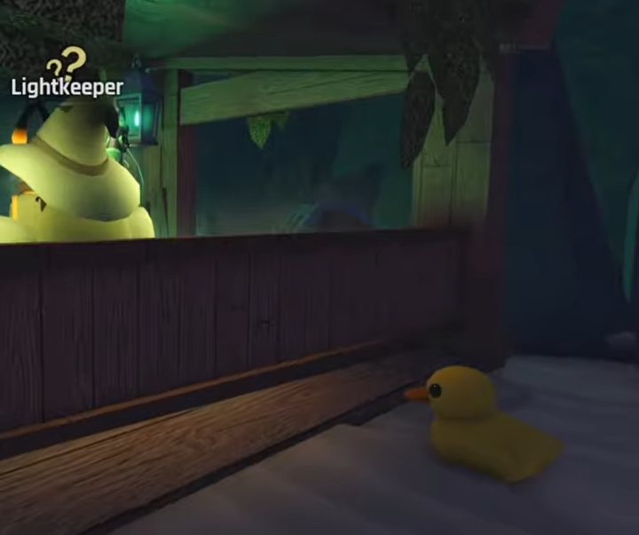 Once inside Angler Cave, find the Lightkeeper NPC. Walk around his stall to the back and pick up the Duck sitting directly behind him.