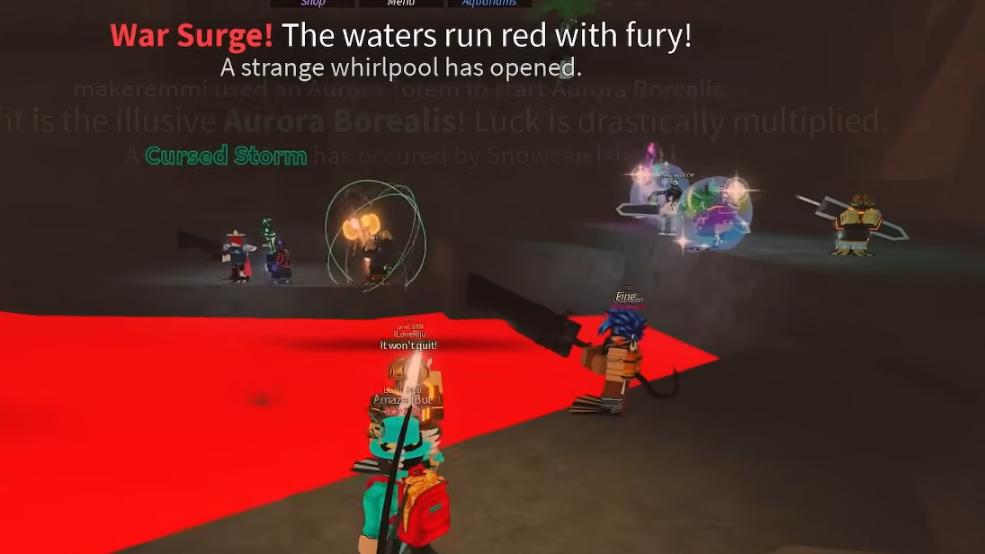 A War Surge triggers naturally through the disturbance mechanic. Using a rod with high disturbance — such as the Falcon — significantly speeds up the spawn. When a War Surge begins, the fishing pool glows red and the message "War Surge! The waters run red with fury!" appears on screen. Sundial Totems cannot force this event.