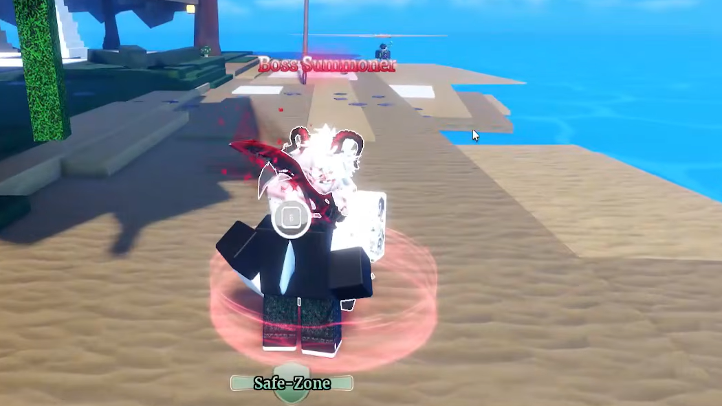 Hueco Mundo at level 5,000 is where the Aizen boss (25M HP) spawns in the open world. The Aizen Seller and Ichigo Seller offer their respective weapons, and the Aizen Trainer unlocks a combat specialization. Aizen drops guaranteed Haki Color Rerolls and has high rates for Race and Trait Rerolls, so farming him is efficient once you can deal enough damage.