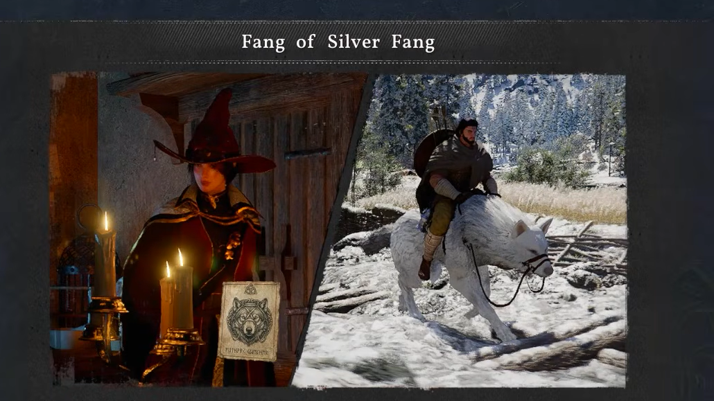 Silver Fang is a giant white wolf that fights alongside you in combat, offering more speed and damage output than the White Bear at the cost of some tankiness. Getting Silver Fang requires a prerequisite quest.