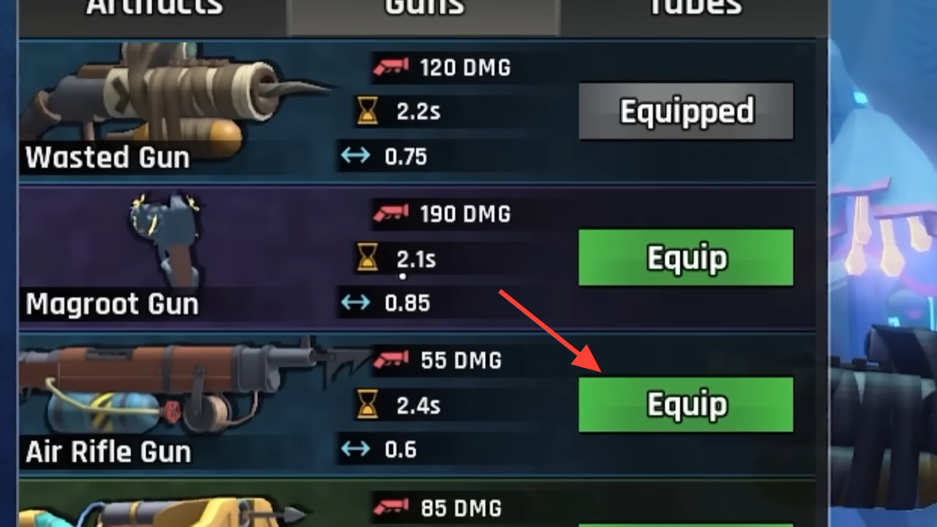 For guns, the Wasted Gun will work on some Spirit Roots fish, but you should swap to the Magroot Gun as soon as possible. The damage difference matters when you're fighting aggressive end-game targets.