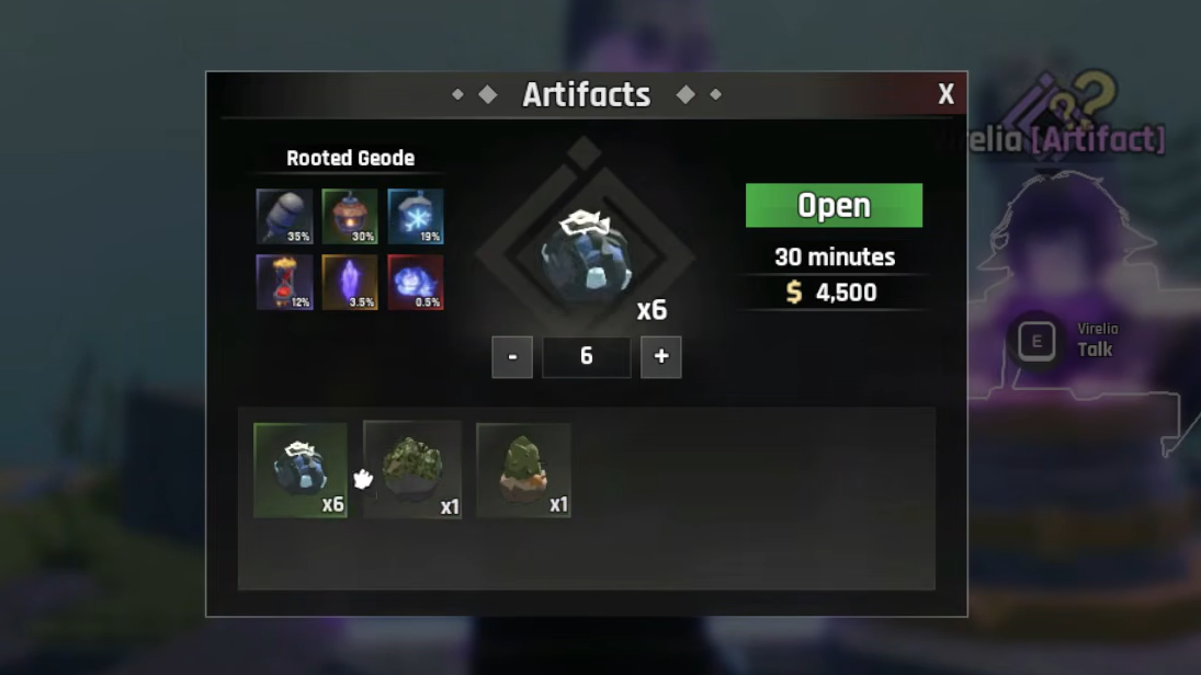 Treasure chests are scattered across all three regions — on the starter island, inside the Ancient Sands dome, and throughout Spirit Roots. Walk up to one and press E to open it for free money, potions, oxygen pods, or Star Shards. They're easy to miss, especially in the deeper areas.
