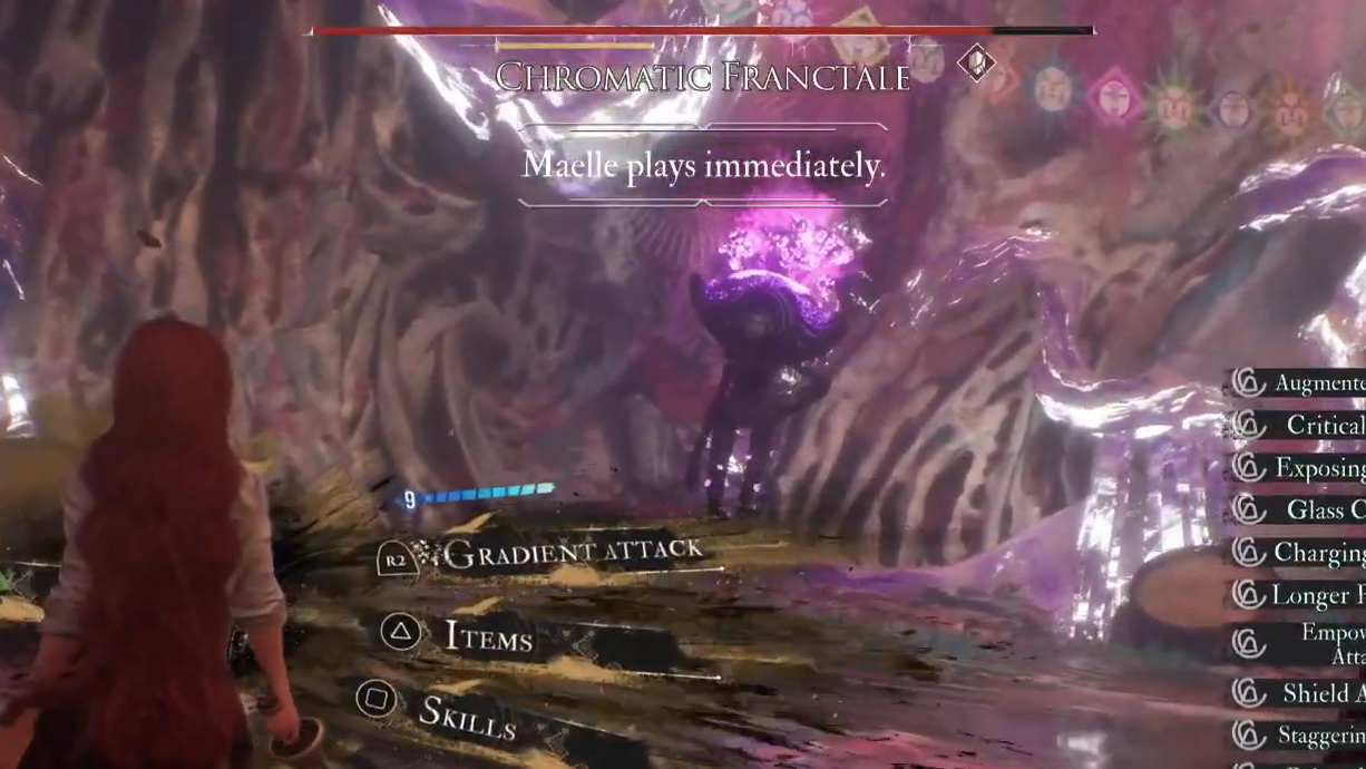 Clearing the arena drops five Colour of Lumina, two Grandiose Chroma Catalysts, a Perfect Chroma Catalyst, and the Esquim weapon for Maelle, which leans into her aggressive front‑line role.