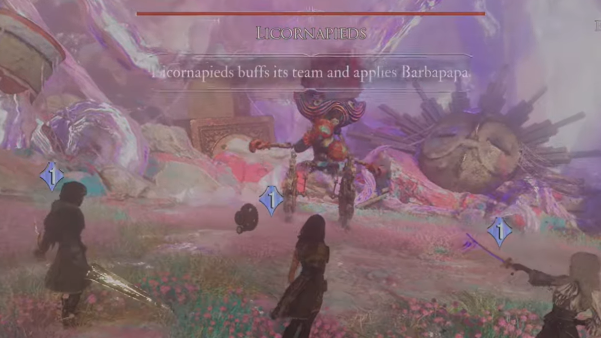 Licornapieds is the most elaborate side encounter in Verso’s Drafts and the only one that isn’t explicitly tagged “Chromatic”. Mechanically it’s a fusion of Licorne and Machinapieds, and narratively it’s hidden behind the zone’s main scavenger hunt.
