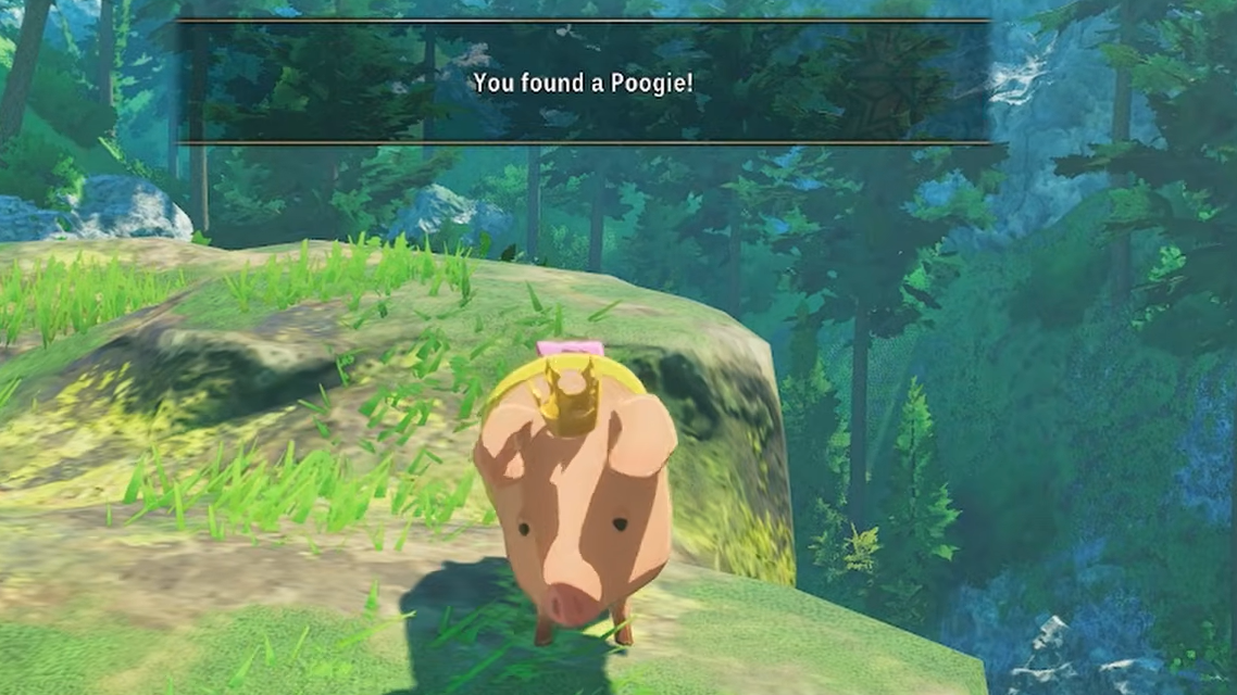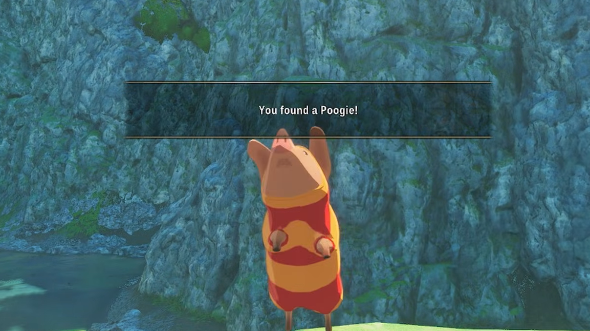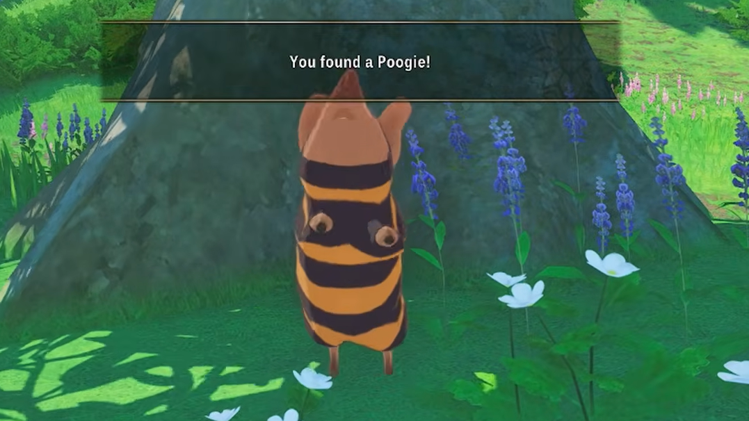 Near the area where you first learn to use the Roar ability to bypass monsters, two climbable ledges sit along the path. The first ledge has a fruit tree; the second ledge, slightly higher, holds a Poogie. It's easy to miss because most players grab the fruit and move on without climbing further.