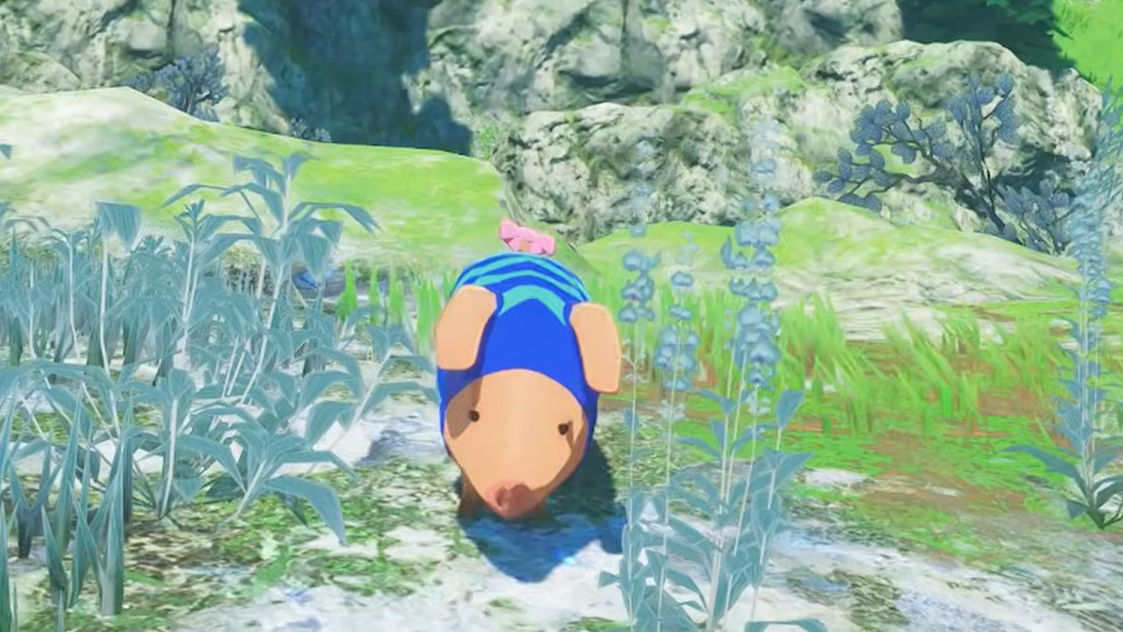 A tall, seemingly inaccessible rock spire in northern Azuria actually has a Poogie on its peak. You can reach it by using a flying monstie and an extended-glide technique. The trick involves gliding until you're about to lose altitude, then tapping the jump button repeatedly to reset your glide arc. Launch from the highest point on the mountain behind the farm, and you should arrive at the spire's top with room to spare. This Poogie reportedly rewards a Vital Essence instead of the standard Trade Tickets.