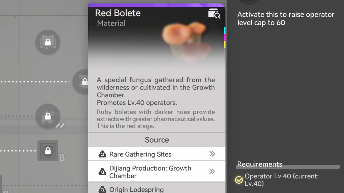 Red Bolete is the next-tier mushroom for promoting Operators to E2. In Beta Test II, it appears only in Originium Lodespring and on the Power Plateau, and you are expected to carry explosives while exploring these maps.