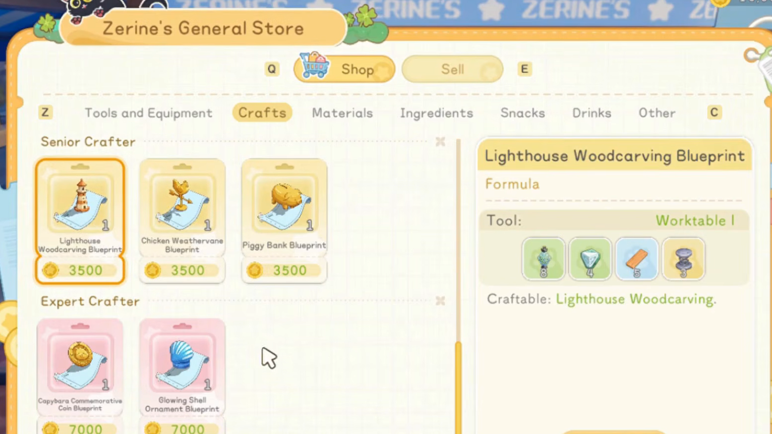 Once you reach Senior Crafter, Zerine will sell gold ore for 25 coins each (up to 50 units with the Supply Boost upgrade maxed), which is useful if you need gold for crafting but don't want to trek back to the forest.