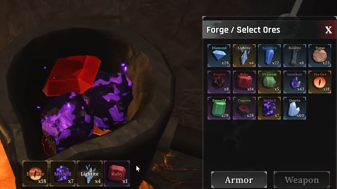 The ore system in The Forge is built to reward deliberate mining and recipe planning rather than blind dumping. Once you know which rock types hide each trait ore, and how much you need in a recipe to fully power them up, your weapons and armor stop being random upgrades and start feeling like deliberate builds.