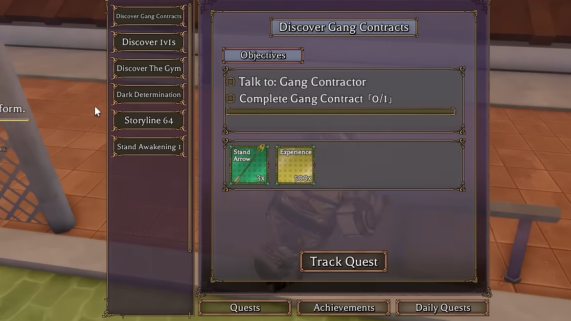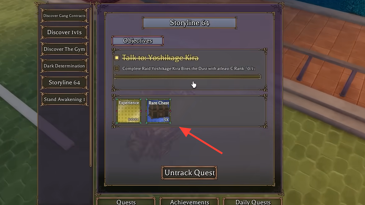Every few story missions you finish, the game awards free Stand Arrows automatically. Story quests also drop chests, grant the most experience, and level your Stand's Conjuration faster than any other activity. If you're below level 30, there is no reason to grind any other method. Just follow the large blue quest marker on your screen and keep progressing. You'll accumulate arrows almost passively while also unlocking new moves and raising your combat stats.
