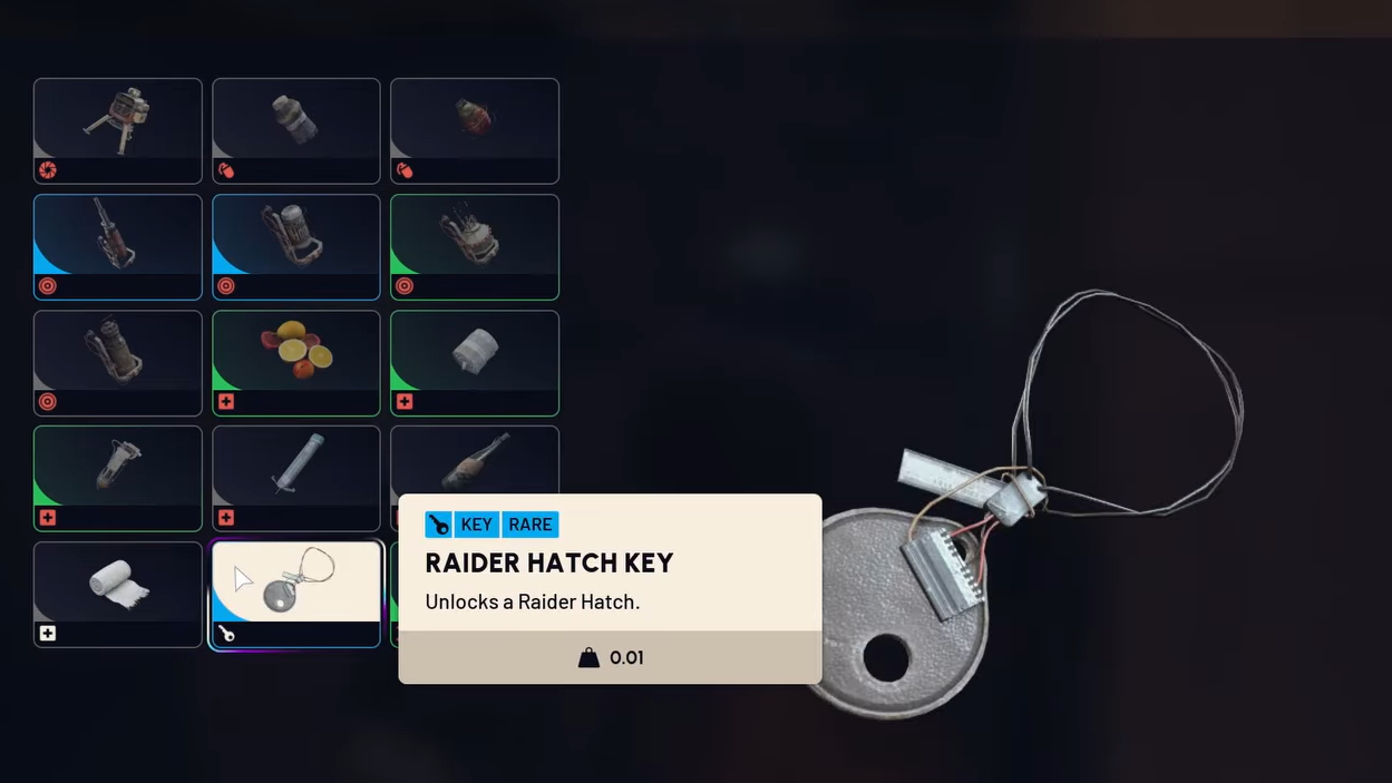 Raider Hatch Keys can appear as random world loot during topside deployments. They spawn inside bags and containers, though the drop rate is low. Veteran players report finding only a handful across dozens of hours of play, so don't count on looting alone to keep you supplied. You can also recover them from the bodies of other players you eliminate, which makes PvP encounters a potential — if unpredictable — source.