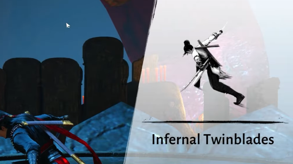 All about overwhelming enemies with rapid consecutive attacks. Delivers high DPS and mobility but offers essentially zero survivability — you live or die by your offense. Uses the Infernal Twinblades and Mortal Rope Dart.