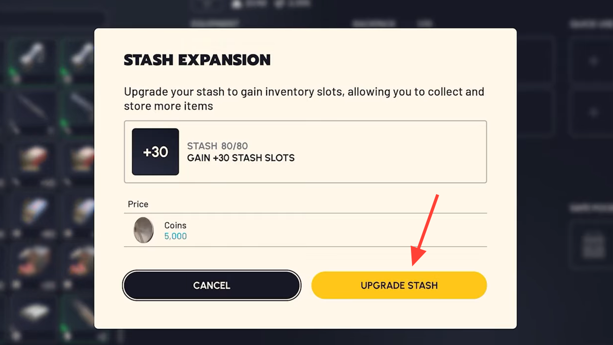 | Upgrade tier | Cost (Coins) | Slots added | New Stash capacity |