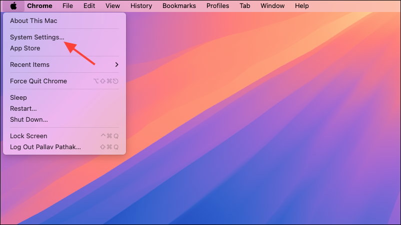 Step 2: Open System Settings from the Apple menu ().