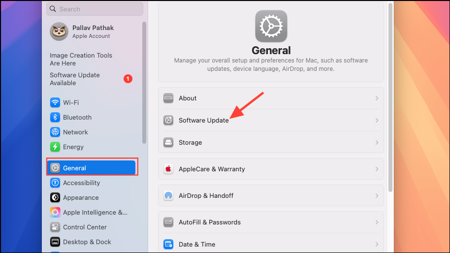 Step 3: Navigate to General and then select Software Update.