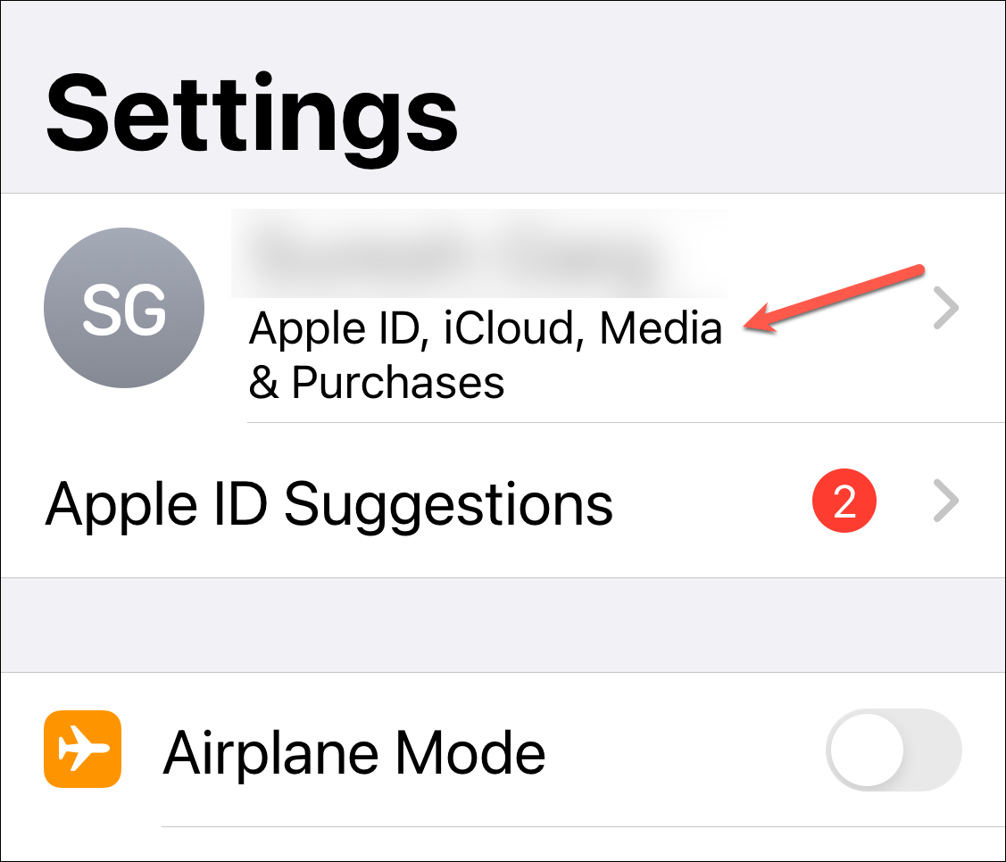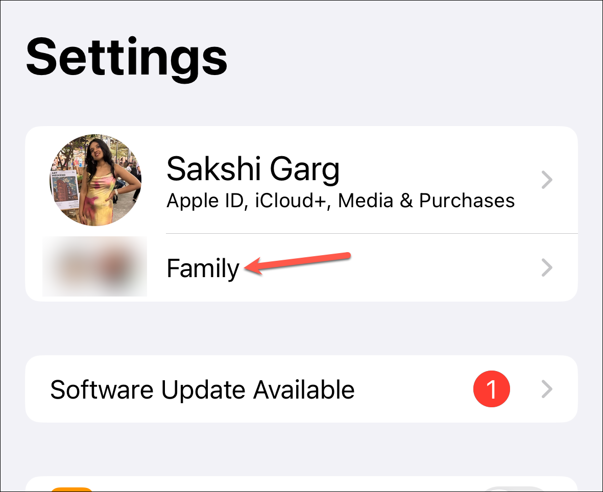 To set up Family Sharing, open the Settings app on your iPhone and tap your name at the top.