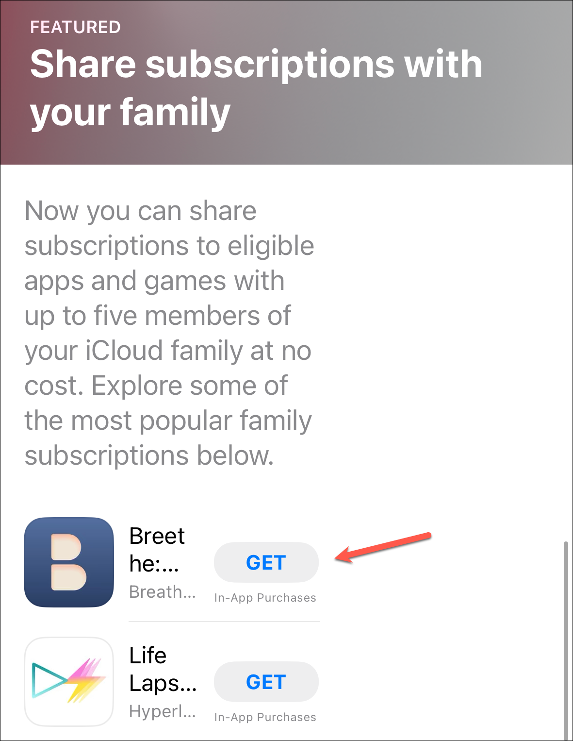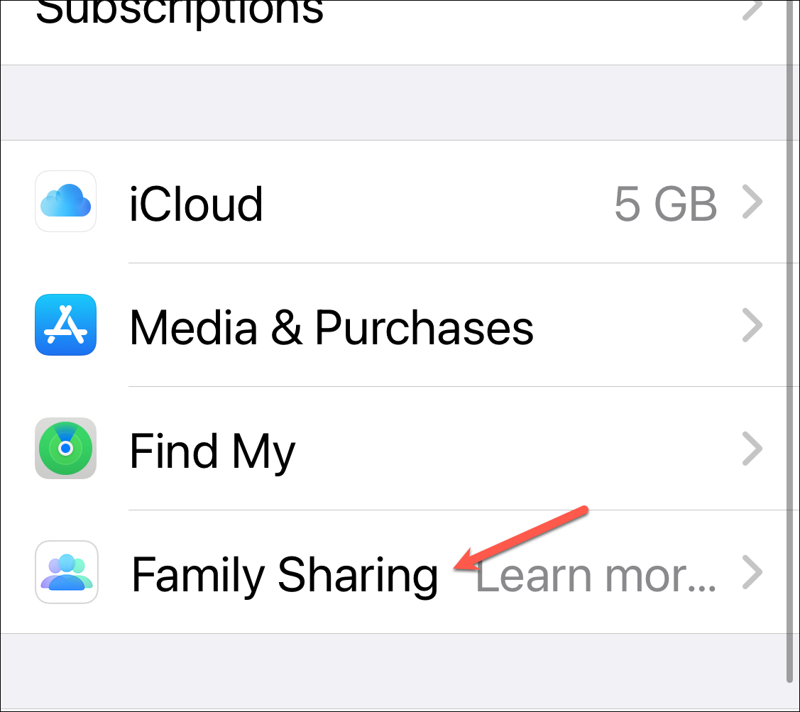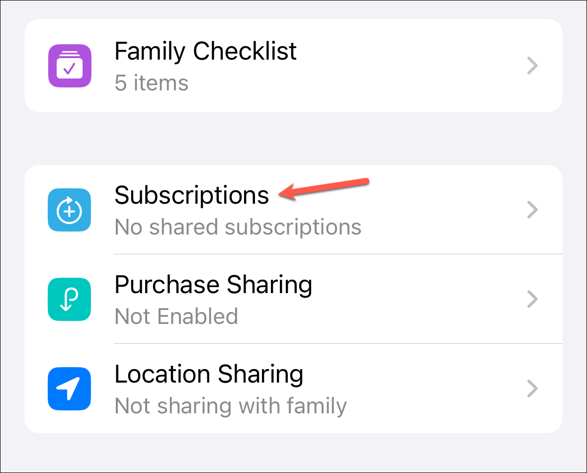 You'll find a list of Apple services or other app subscriptions that can be shared, depending on which option you tapped.