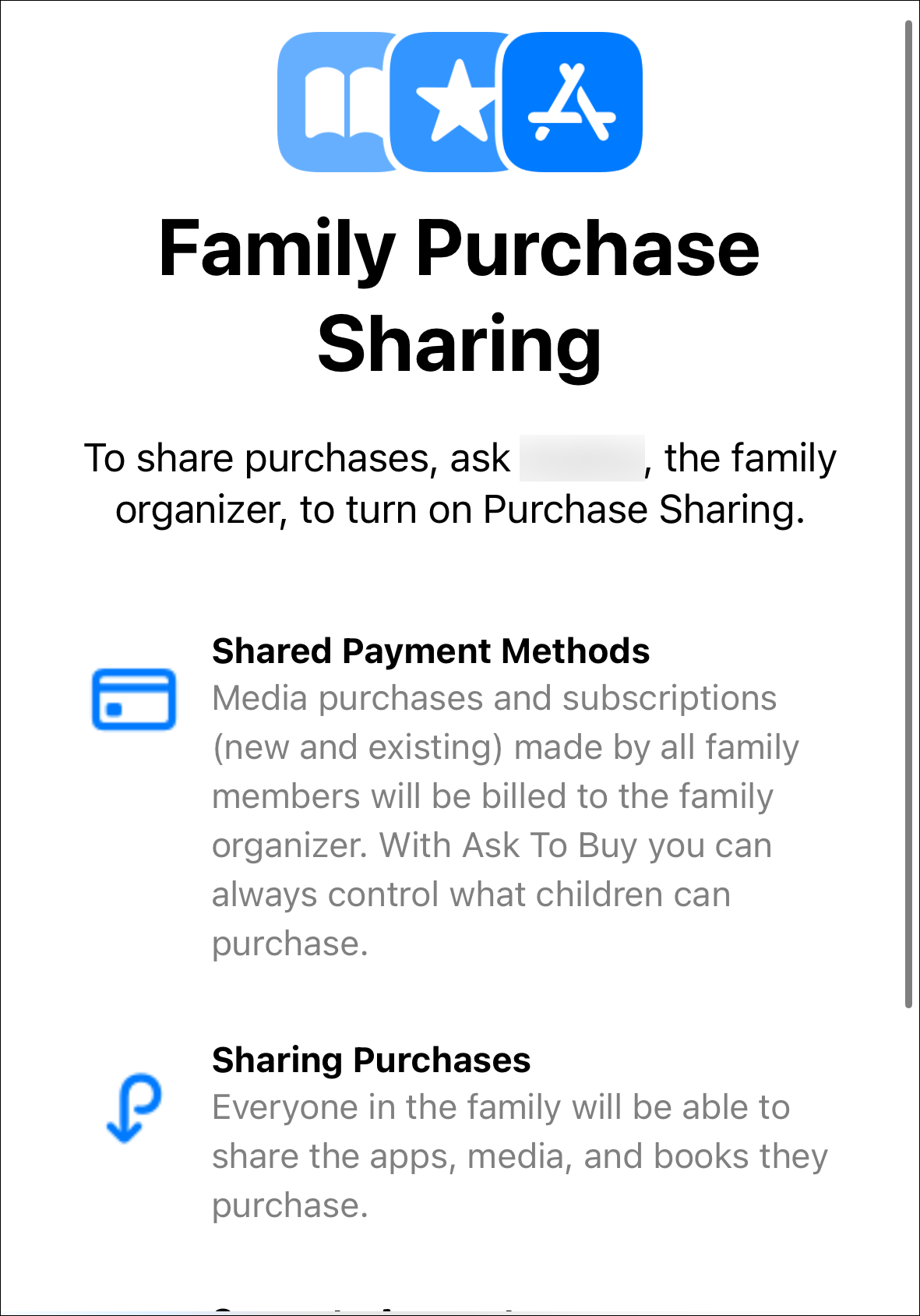 To share iTunes, Apple Books, and App Store purchases, the family organizer will have to enable purchase sharing.