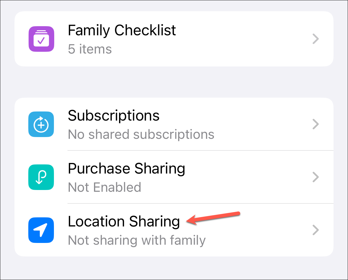 From the 'Family' settings, tap the 'Location Sharing' option.