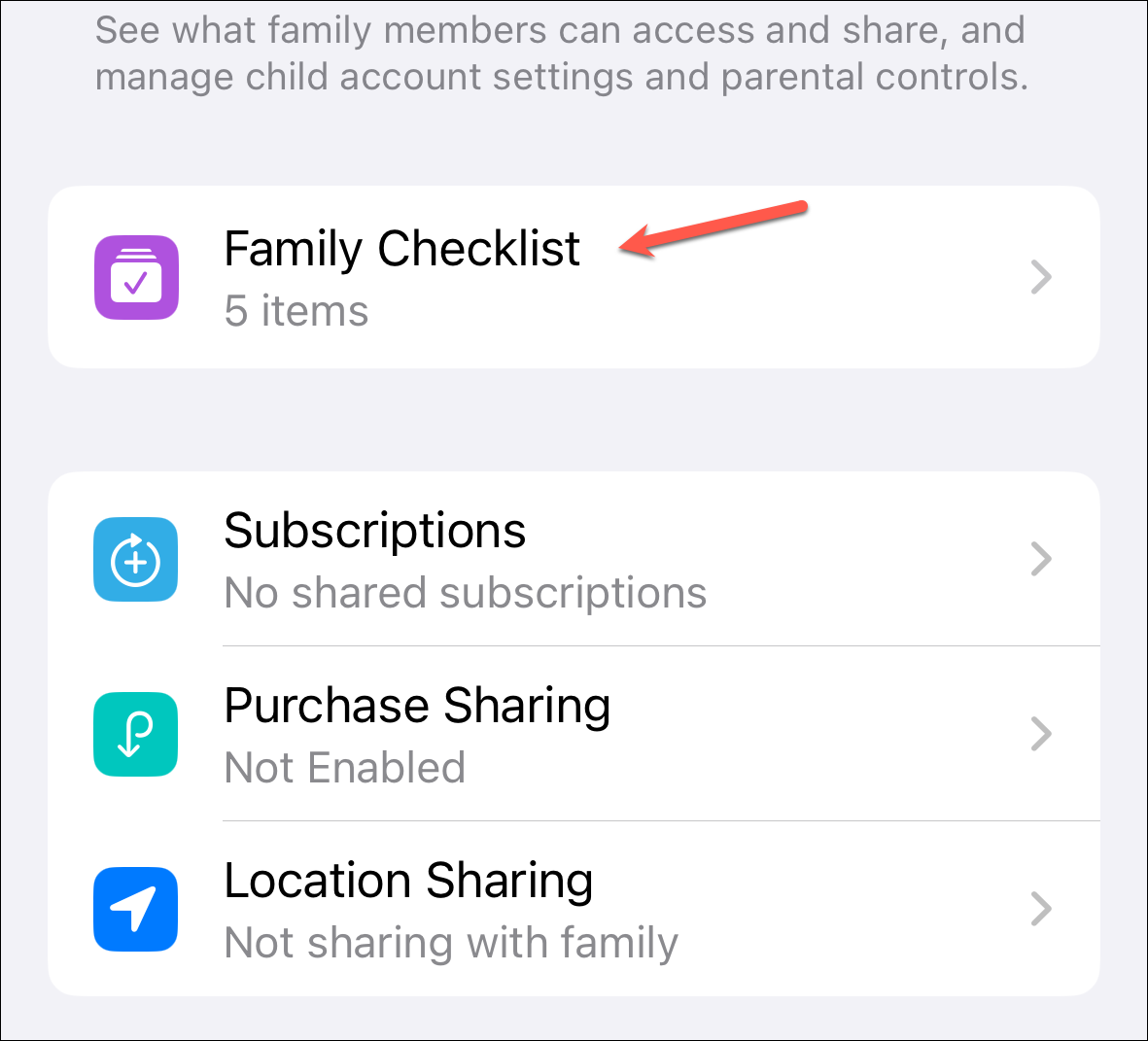 Apple also provides a Family Checklist on the Family settings page. Tap on it to open it.