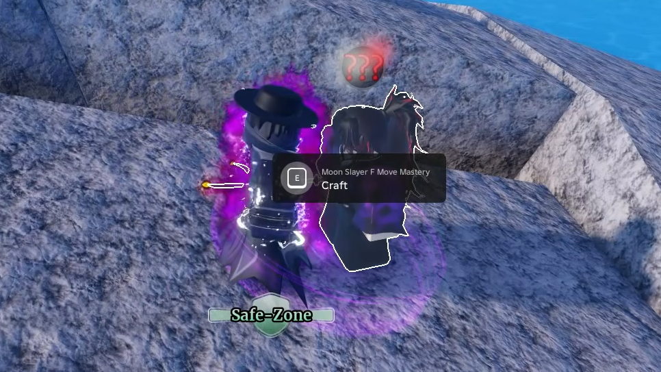 After unlocking the fighting style, head to the upside-down hand structure on the right side of Boss Island. The Moon Slayer F Move Mastery NPC sits near the King of Heroes seller NPC. The F move costs: