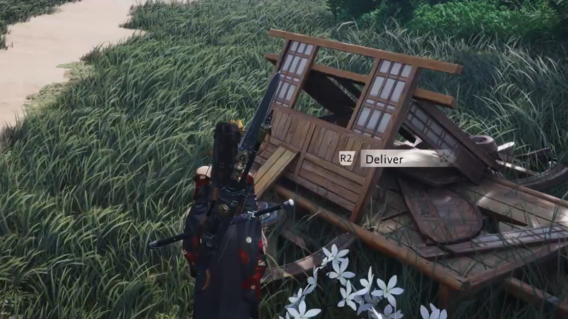 Step 2: Follow the quest marker from the Boundary Stone. Instead of finding Nie himself, you arrive at a broken-down wagon near white flowers in bloom. This is described as Nie’s home area.