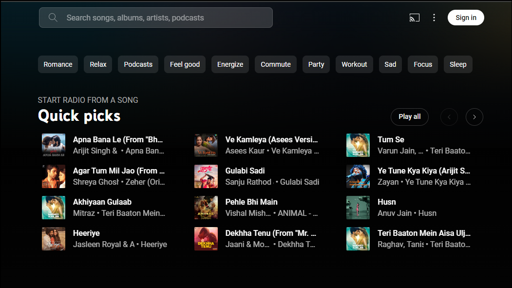 YouTube Music relies on the YouTube search engine to bring you a huge library of music, including the most trending songs.