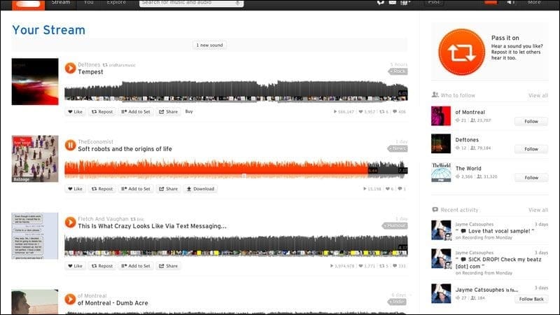 One of the best places to stream independent music is SoundCloud, a platform that first became available back in 2007. However, it is not just a streaming platform, as you can create and upload your own tracks, create playlists, and add comments. SoundCloud is the most preferred choice for indie artists, so you may not be able to find many well-established artists on the platform.