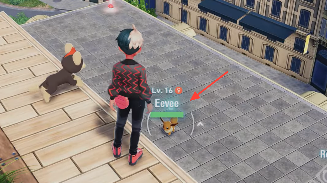 If the spawn rolls in your favor, an Eevee will be waiting — often around level 16–17. If it isn’t there, come back later. Eevee can disappear if you fail the catch, and it won’t necessarily return on the next day-night cycle. Resting on a bench is a quick way to advance time and refresh spawns. Treat rooftop Eevee as skittish: approach cautiously and be ready to throw immediately. Ultra Balls materially improve your odds.